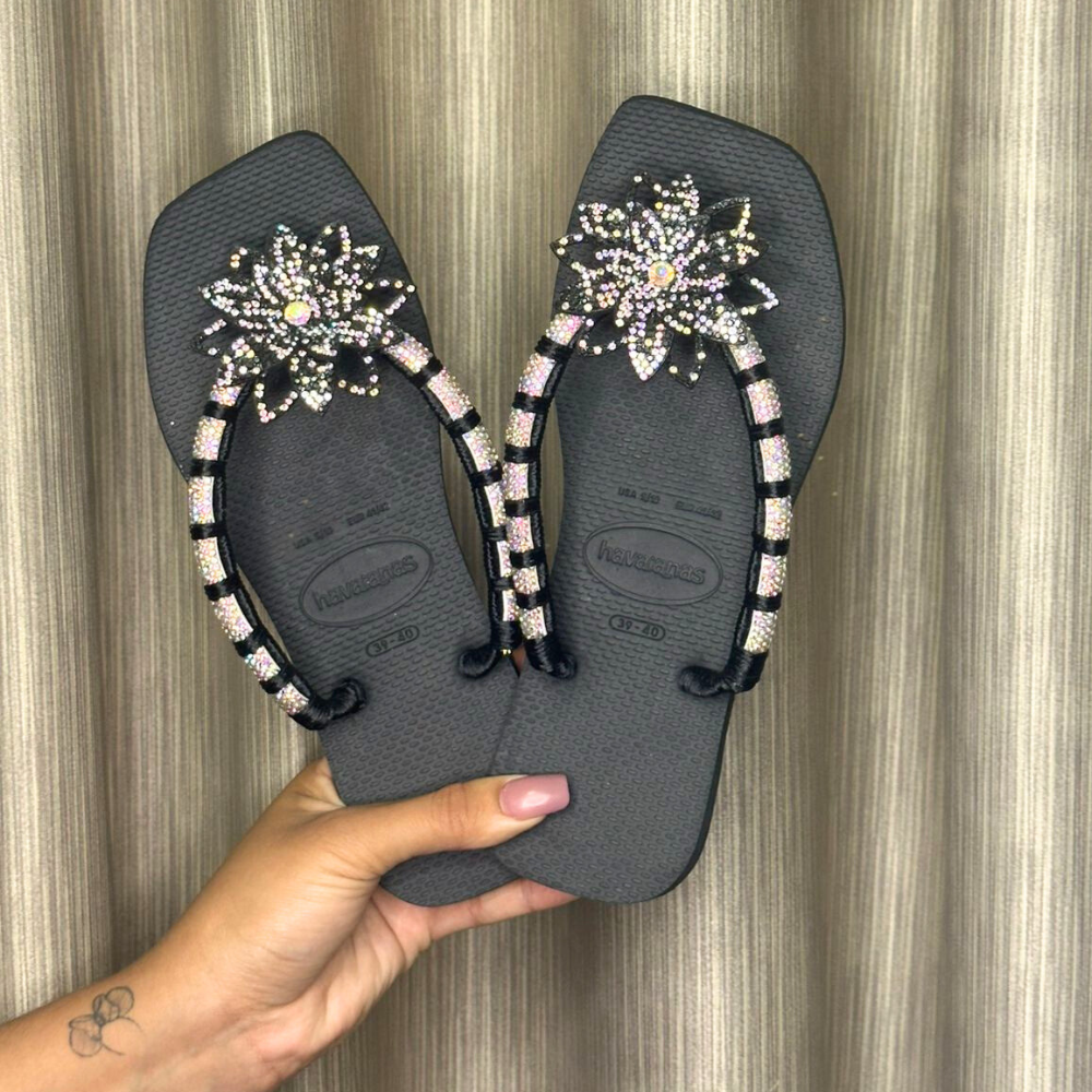 Especializada em chinelos personalizados com pedrarias, oferecemos designs exclusivos que combinam conforto, elegância e brilho. Perfeitos para todas as ocasiões, nossos chinelos são feitos para quem valoriza sofisticação e qualidade em cada detalhe.