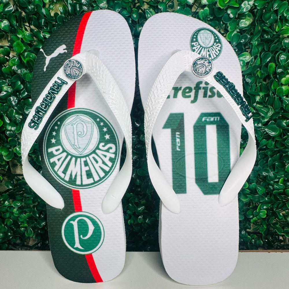 Havaianas ORIGINAL com plaquinha personalizada, pingente exclusivo e personalização feita com excelência. Ideal para quem quer representar seu time com conforto e elegância!